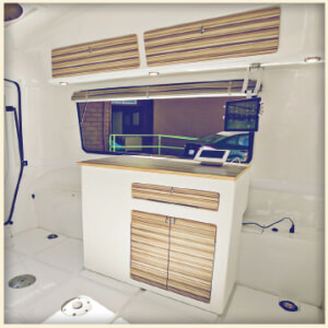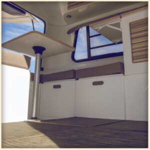 Adaptiv™ キューブは高い耐久性と耐候性を備えたプラスチックで作られています。それぞれが安全に固定されるようにデザインされ、軽量かつ頑丈、掃除も簡単です。オプションの固定器具を用いて、キューブをファイバーグラス製の壁に固定し、レイアウトの一部を恒久的にすることもできます。テーブルトップ、カウンタートップやドアといったウッドパーツは、通常の合板よりも55%軽くて同じ強度を持つLite-Ply® を用いて高い精度で作られています。テーブルの脚は簡単にフロアに装着することができます。高品質なクッションとカーペットフロアは共通の装着機構を持ち、フロアやキューブの上に取り付けることで更なる快適さとファッション性を手に入れることができます。